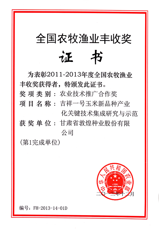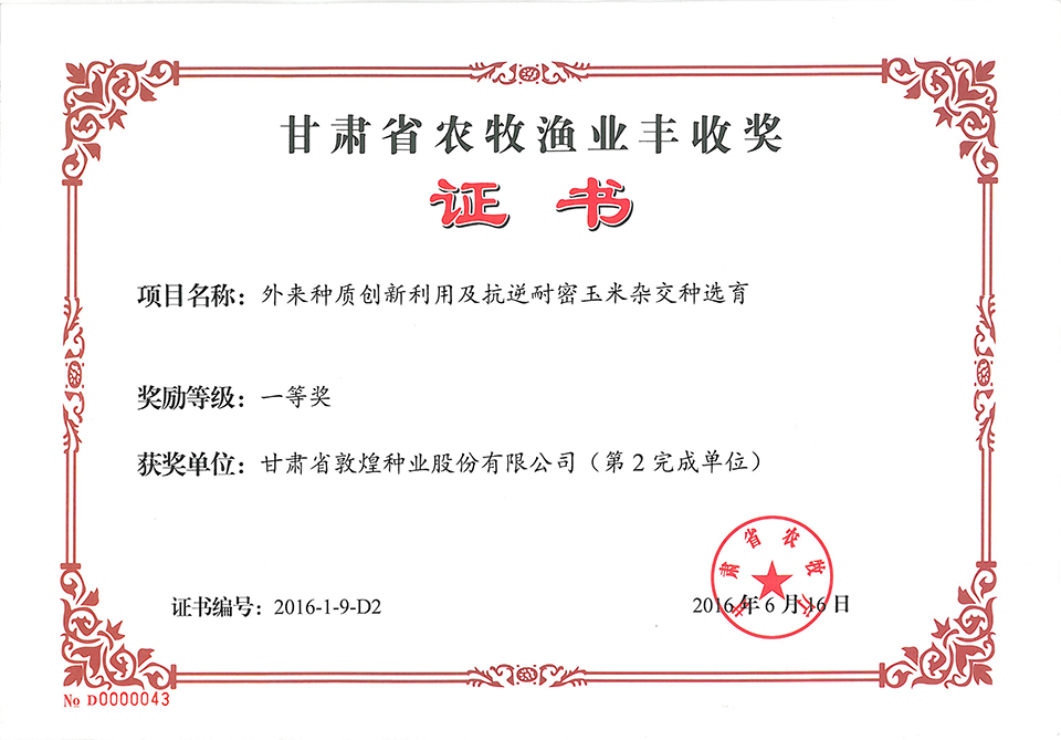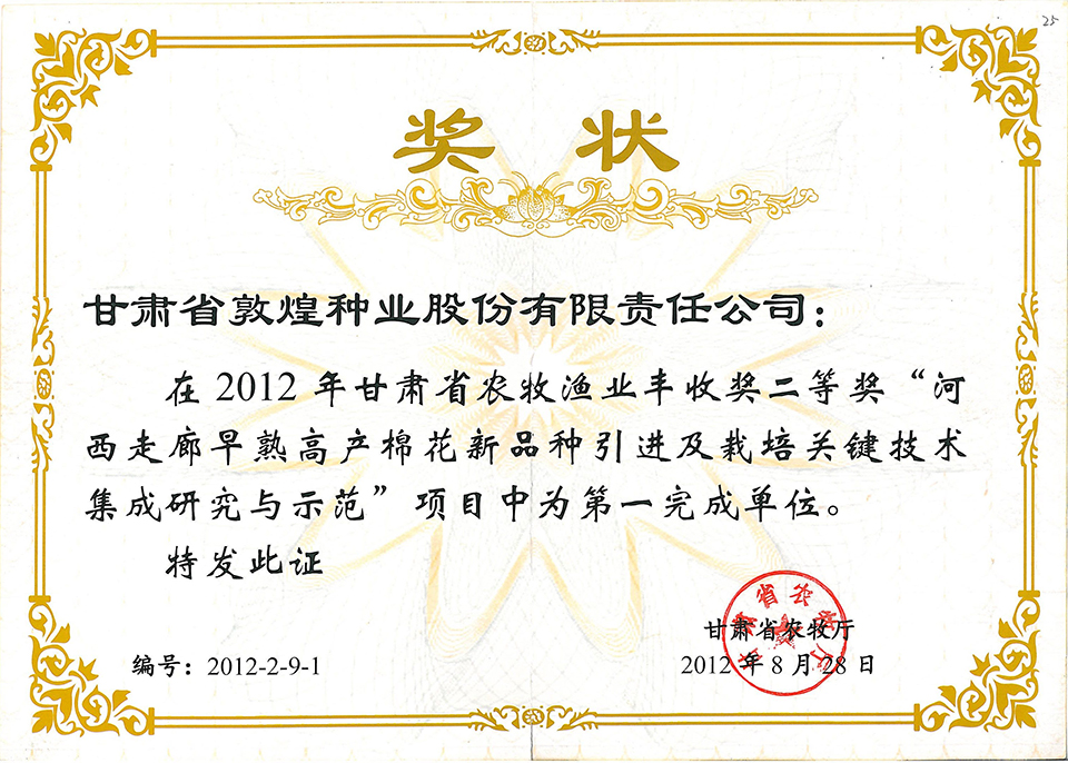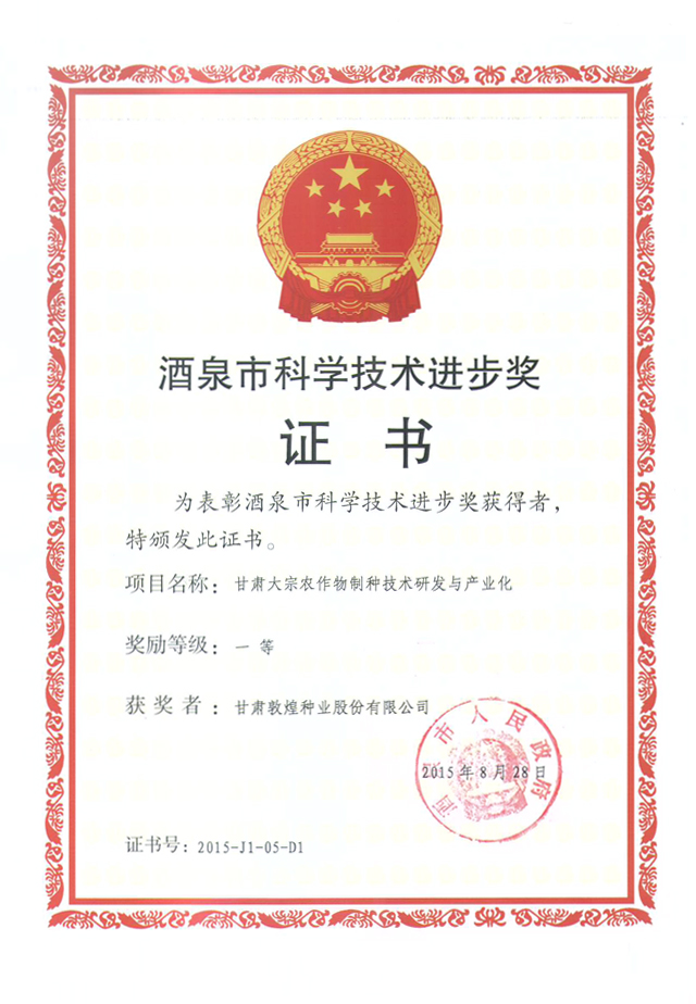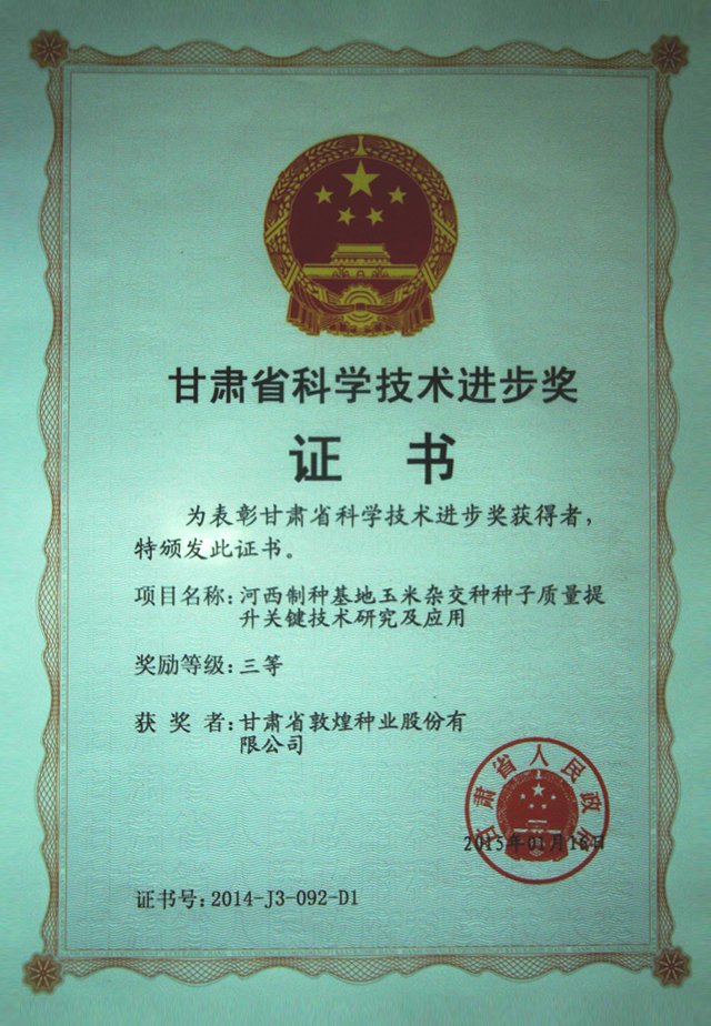 當前位置:敦煌種業(yè)|DHSEED / 研發(fā)創(chuàng)新 / 科研成果 / 科技進步獎